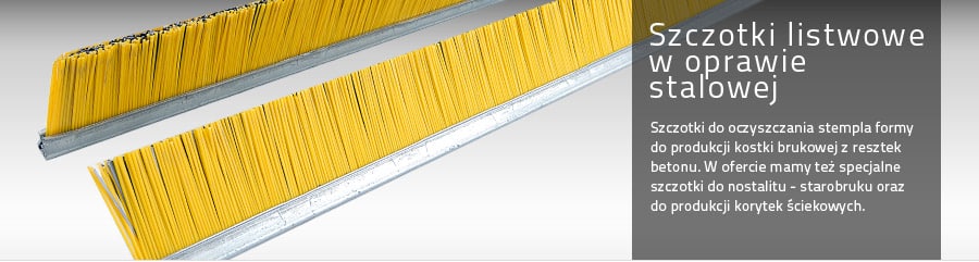 Nasza firma to polski lider w zakresie produkcji szczotek do wibropras. Jeżeli więc interesują Państwa szczotki techniczne, producent dostarczy Wam odpowiednie produkty. Oferujemy między innymi szczotki przemysłowe listwowe w oprawie stalowej lub drewnianej. Dostępne są także szczotki walcowe. Producent dobiera ich parametry indywidualnie, zgodnie z życzeniem klienta. Naszym Klientom proponujemy również takie rozwiązania jak szczotki rolnicze, które doskonale sprawdzają się podczas pracy na roli. Aby zapewnić Państwu możliwie kompleksową obsługę, poszerzyliśmy ofertę o inne elementy niezbędne przy produkcji galanterii betonowej takie jak: listwy do chwytaków, amortyzatory czy przyrządy do badania jakości, a także napędy pod szczotki walcowe.