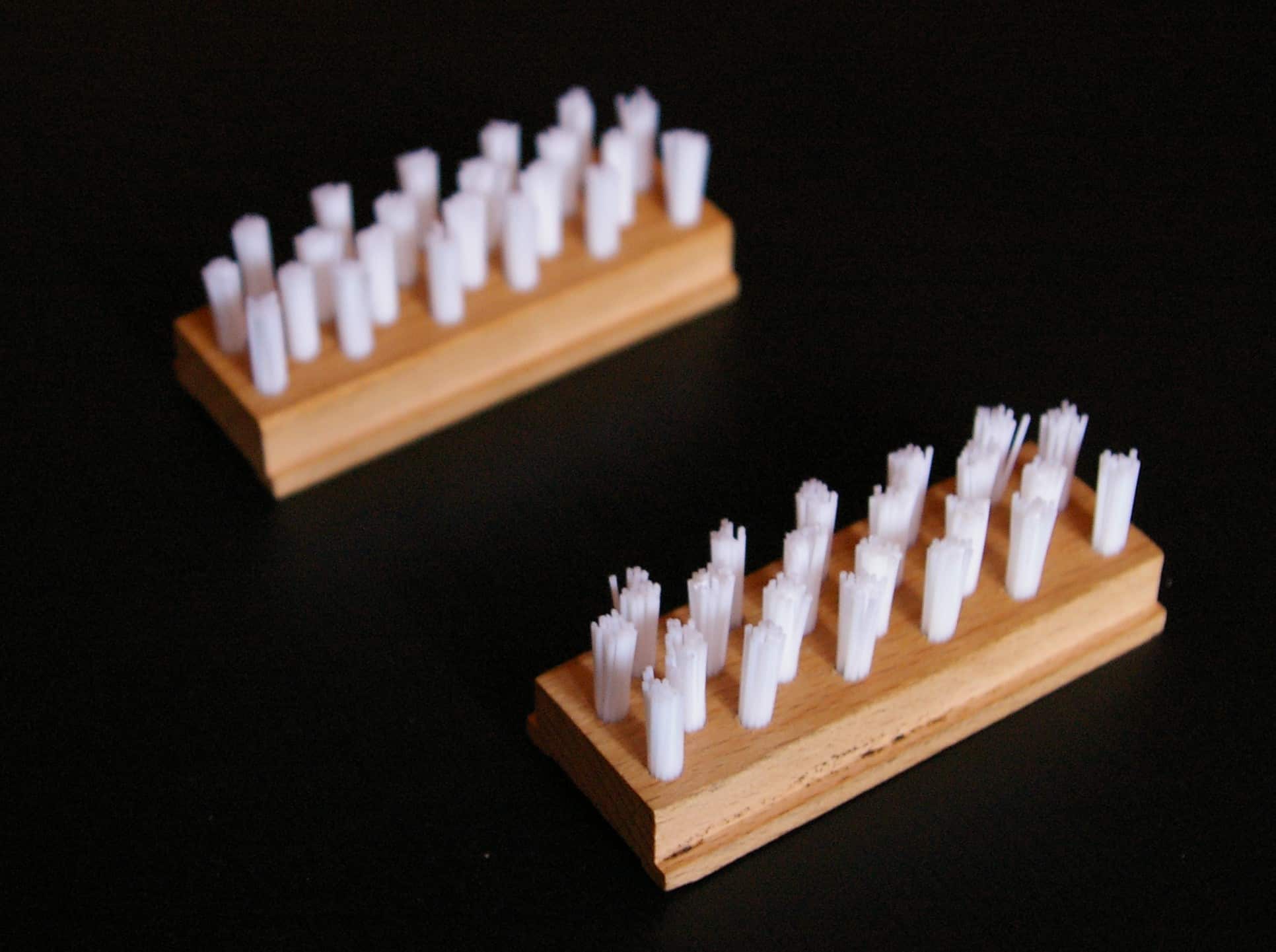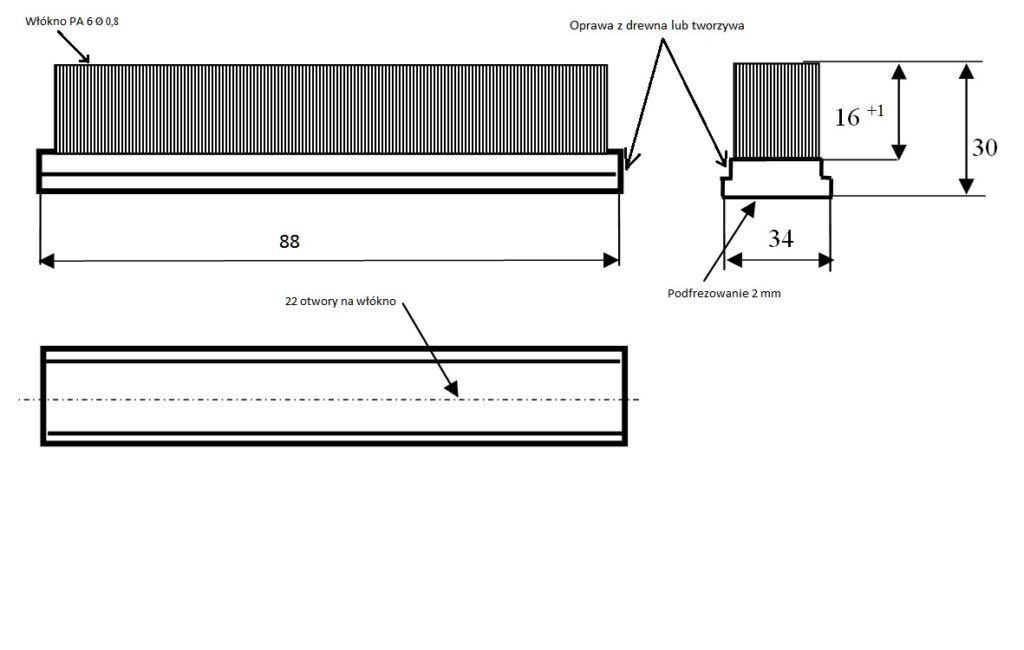 Szczotki są wykonane zgodnie z normą PN-EN 12039:2001: Elastyczne wyroby wodochronne Wyroby asfaltowe do izolacji wodochronnej dachów Określanie przyczepności posypki. Oprawa może być wykonana z tworzywa sztucznego bądź drewna. W każdej szczotce znajdują się 22 pęczki włókna z poliamidu 6 Ø 0,8. Całość wykonana jest metodą naciągu ręcznego. Do szczotek na życzenie dołączamy odpowiednie zaświadczenie o zgodności z normą, dzięki czemu każdy Klient zawsze będzie miał potwierdzenie korzystania wyłącznie z dostosowanych do określonej pracy elementów. Może mieć to niemałe znaczenie m.in. podczas różnego rodzaju kontroli
