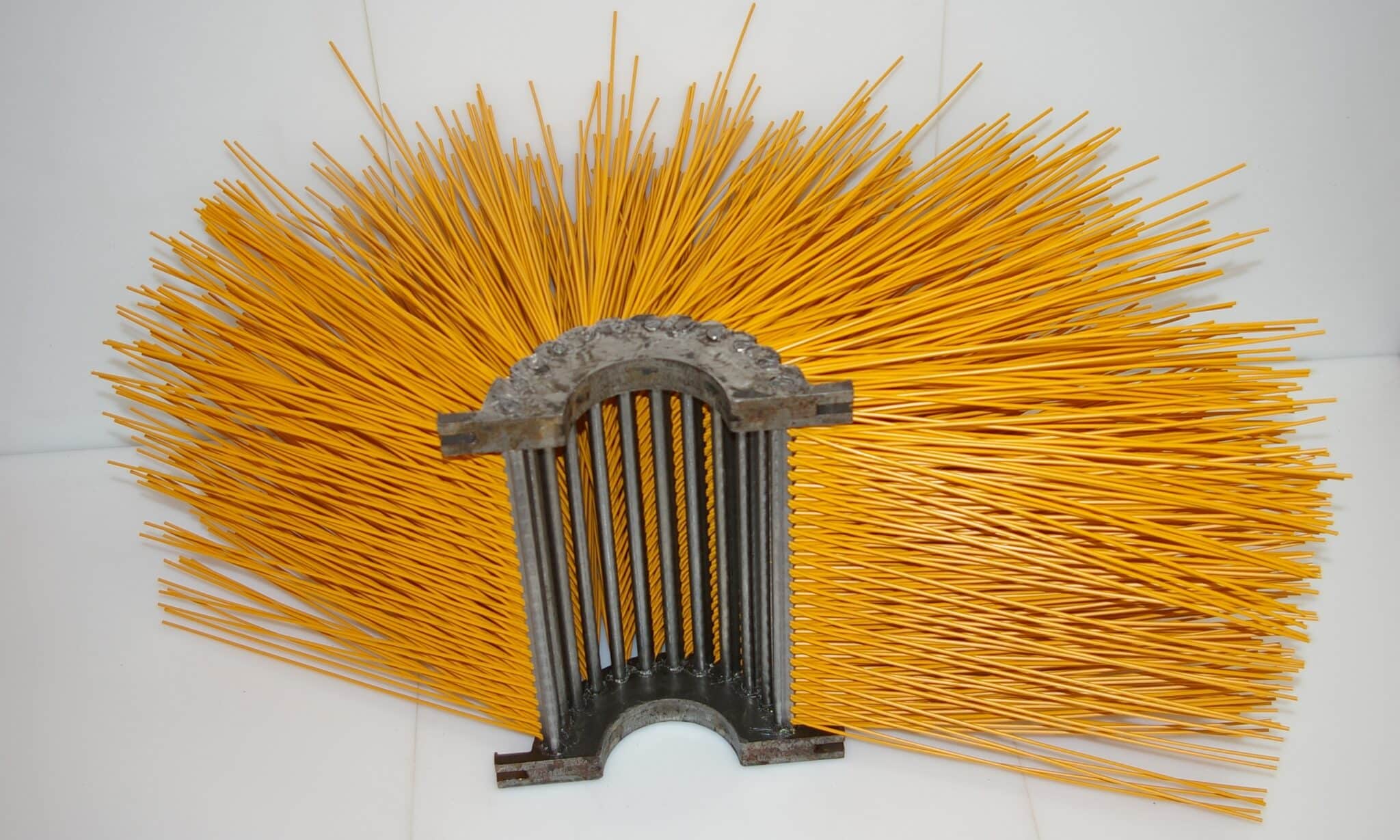 Produkowane przez nas szczotki obrotowe są kompatybilne z maszynami czołowych światowych producentów. Zbudowane są z segmentów o żądanej przez klienta długości oraz średnicy i osadzone w półpierścieniach stalowych lub aluminiowych umożliwiających łatwy montaż na wale maszyny w sekcji usuwania ścierniwa. Część robocza szczotki wykonana jest z odpornych na ścieranie i temperaturę specjalistycznych włókien nylonowych. W naszych szczotkach stosujemy także specjalne dodatkowe zabezpieczenia chroniące szczotkę przed „ukręceniem” i wypadaniem listew w skutek dostawania się śrutu między listwę, a pierścień mocujący.
