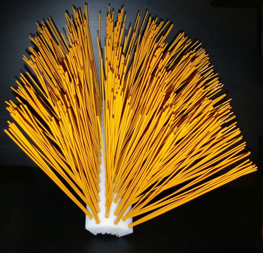 Oferujemy również szczotki do usuwania śrutu złożone z segmentów o przekroju ćwiartki koła przykręcane śrubami bezpośrednio do wału. W tym typie szczotki specjalne włókna nylonowe są zamontowane metodą naciągu. Szczotki produkujemy z wykorzystaniem segmentów wykonanych z tworzywa sztucznego, ale możliwa jest również regeneracja szczotek w oprawie drewnianej innych producentów. Polega ona na usunięciu zużytych włókien i włożeniu nowych w te same oprawy, co znacząco obniża koszt produktu. Szczotka do oczyszczarki blach wyprodukowana w naszej firmie z pewnością spełni nawet największe wymagania.