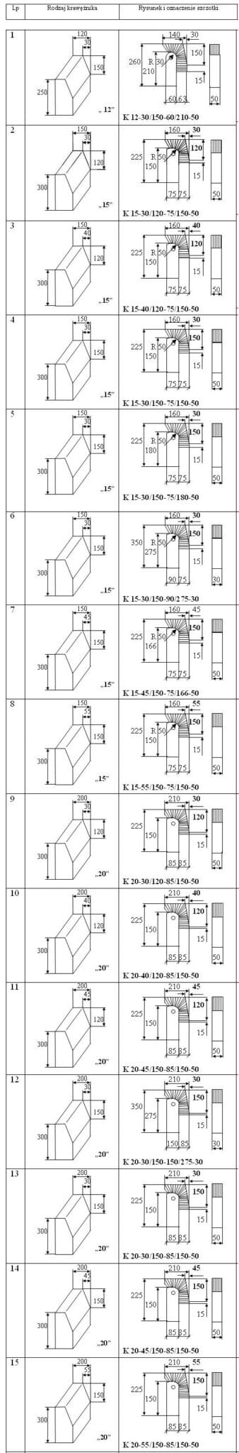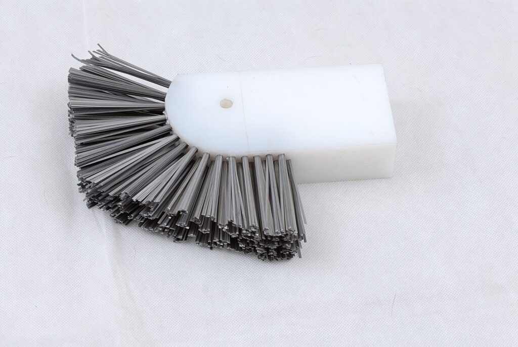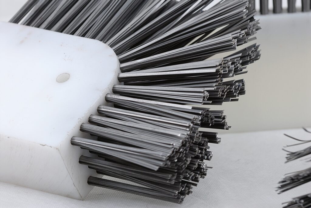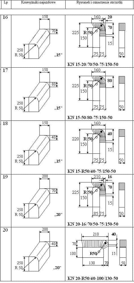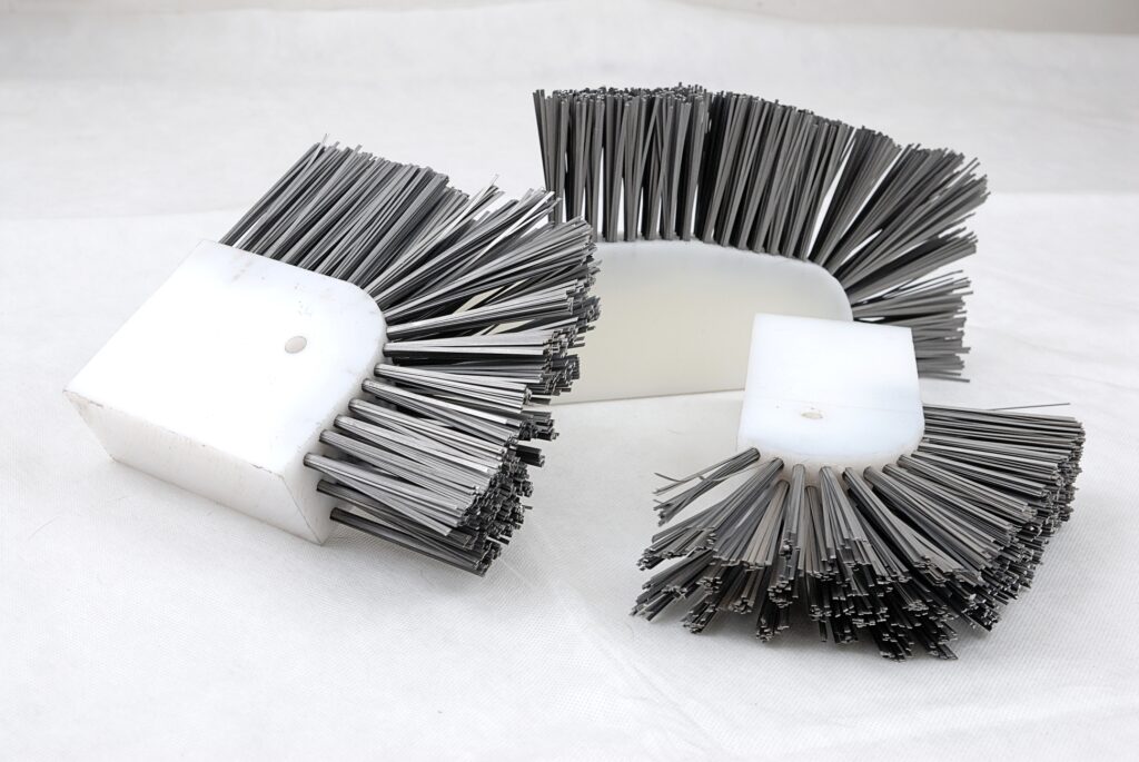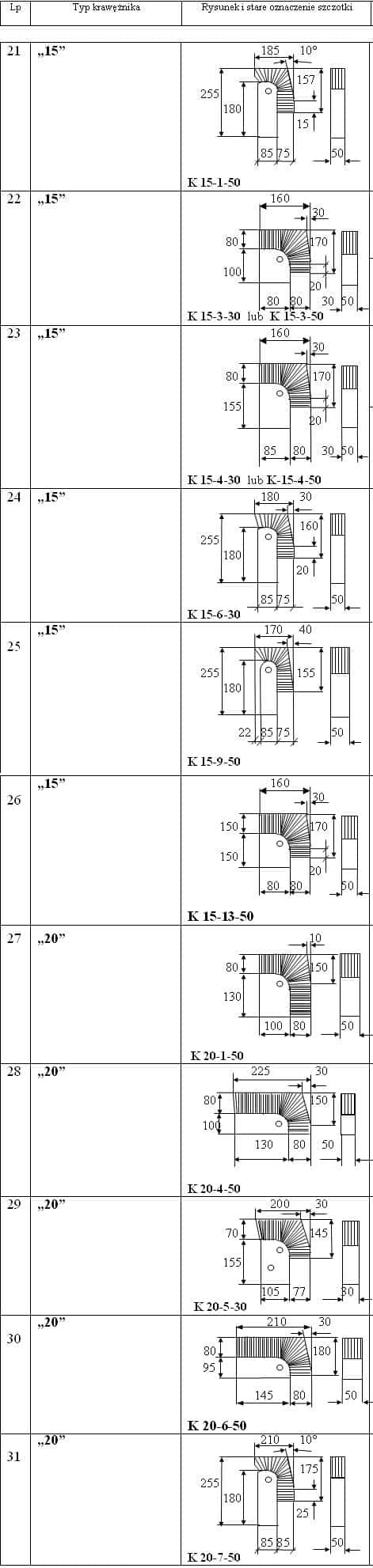 Szczotki służą do czyszczenia stempla formy do produkcji krawężników z resztek betonu. Oprawy wykonywane są z tworzywa sztucznego, a część robocza z płaskiego drutu stalowego ustawionego równolegle do dużych płaskich powierzchni oprawy. Otwór technologiczny Ø 10,5 potrzebny jest do wykonania szczotki. Część robocza może składać się także z mieszanki drutów i włókna sztucznego lub samego włókna.